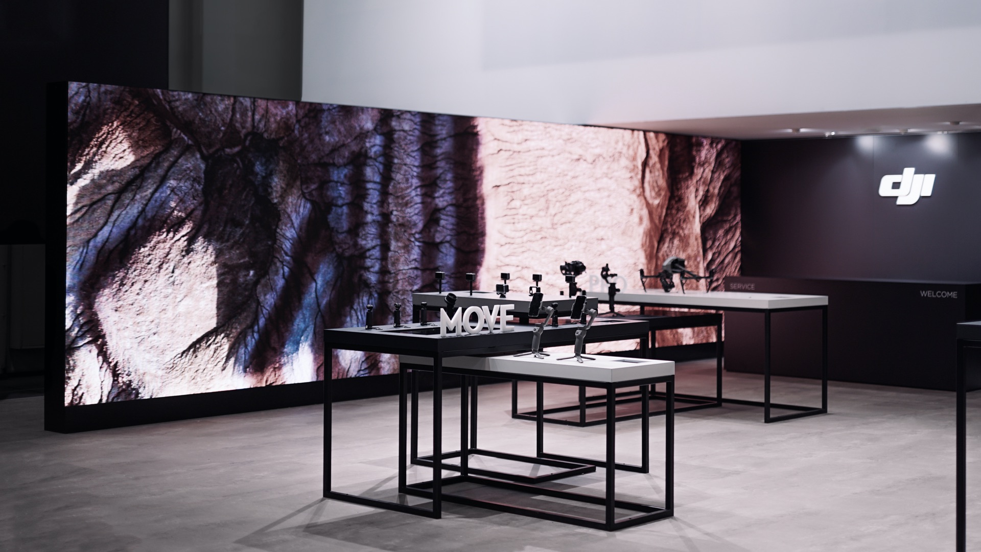 Das neu gedachte Standkonzept schafft eine individuell skalierbare Markenwelt, die sich konsequent der Product Experience unterordnet – und somit auch langfristig bei Messeauftritten von DJI in Verwendung bleiben wird.